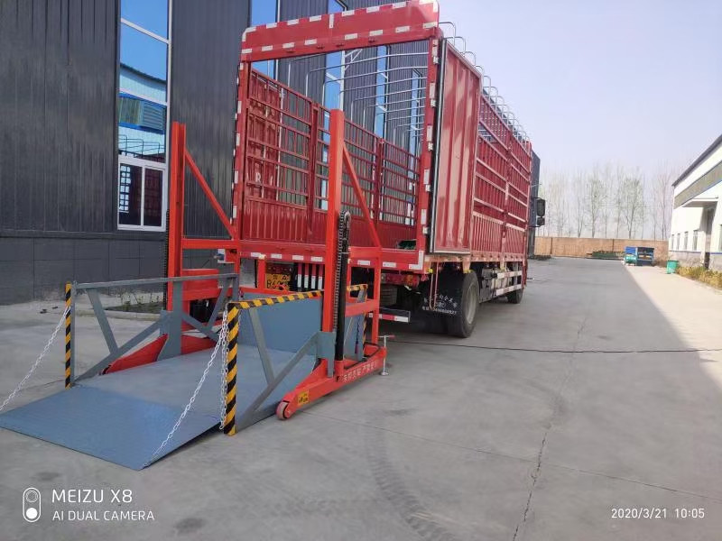 3.卸貨平臺(tái)機(jī)架后部設(shè)有可調(diào)節(jié)鏢絲桿支撐地面,用于裝卸貨作業(yè)時(shí)起到整體固定作用